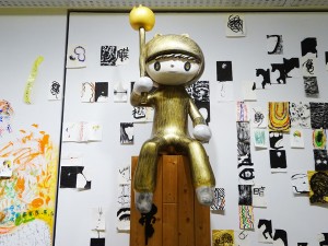 さて、萩原朔太郎記念館敷地内にある土蔵ではただ今、アーツ前橋で開催したワークショップにて絵本作家・荒井良二さんと32人の子どもたちが製作した作品《オノマトペッコ》の一部を展示しています! こちらの展示の元となったアーツ前橋での作品の様子も少しご紹介させていただきますね。