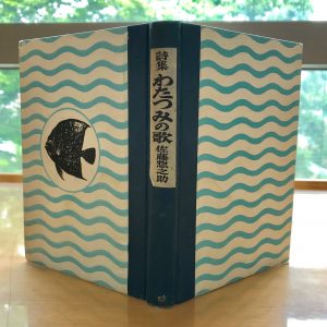 写真は、惣之助の最後の詩集となった『わたつみの歌』(1941(昭和16)年7月、ぐろりあ・そさえて)です。この詩集の装幀と題僉***は、朔太郎が手がけました。