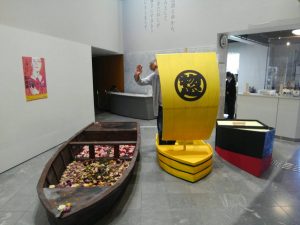 館内にて展示しておりました舟たちも本日解体です。写真は制作者の当館職員と三艘の舟です。