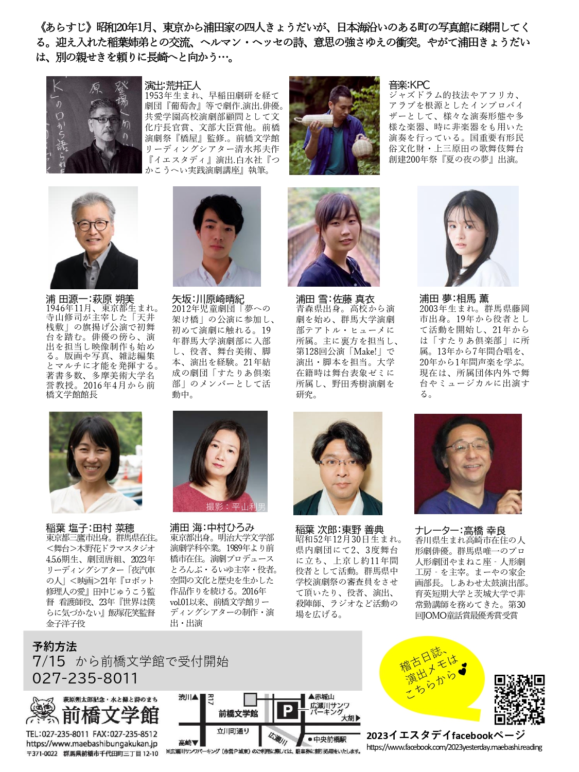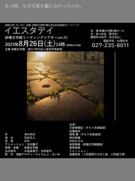 前橋文学館リーディングシアターVol.22「イエスタディ」を上演します。
