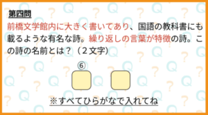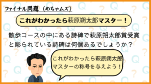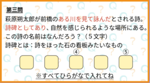 この活動はサイトにある問題を私たちが設定した散歩コースを歩きながら解いていただき、萩原朔太郎について詳しく知るというものです。