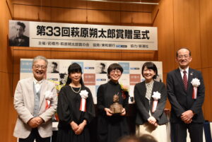 11月1日に開催した第33回萩原朔太郎賞贈呈式の様子や受賞者の大崎清夏さんと受賞作「暗闇に手をひらく」