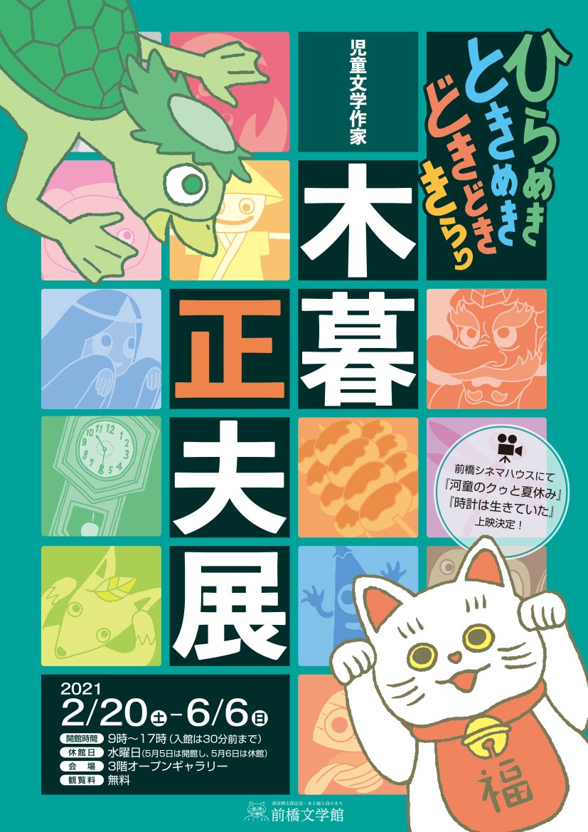 | 内容 | 前橋市出身の児童文学作家・木暮正夫。彼は児童文学に留まらず、社会的な作品から軽妙な作品、郷土群馬の民話や笑い話、ノンフィクションまで幅広いジャンルを手掛けました。創作活動のきっかけとなった高校時代の作品のほか、日本のわらい話・おばけ話シリーズ、前橋空襲を題材にした『時計は生きていた』、アニメ映画『河童のクゥと夏休み』など、創造性豊かな作品世界を紹介します。 前橋シネマハウスでは上記2作品の映画を上映。2021年3月27日(土)には新版『河童のクゥと夏休み』の挿絵を担当した、イラストレーターであり正夫の次男でもあるこぐれけんじろうさんをお招きし、シアタートークも行います。 児童文学作家/木暮正夫 1939年、群馬県前橋市生まれ。市立中川小学校、市立第二中学校、県立前橋商業高等学校定時制卒業。1959年、20歳の時に『光をよぶ歌』が毎日新聞社主催の児童小説コンクールに入選。初の単行本『ドブネズミ色の街』(理論社、1962年)で1963年サンケイ児童出版文化賞推薦となり、同年12月28日にNHK単発ドラマ化され、好評を得る。『また七ぎつね自転車にのる』(小峰書店、1977年)で第7回赤い鳥文学賞を、『街かどの夏休み』(旺文社、1986年)で第27回日本児童文学者協会協会賞を受賞。1992年より社団法人日本児童文学者協会理事長を務め、2006年に第14代会長に就任。2007年1月、映画『河童のクゥと夏休み』の完成を見ることなく逝去。享年67歳。 ※前橋市への「まん延防止等重点措置」の適用を受け臨時休館となったため、5月15日(土)をもって終了いたしました。ご来館を予定されていたお客様には誠に申し訳ございません。 |