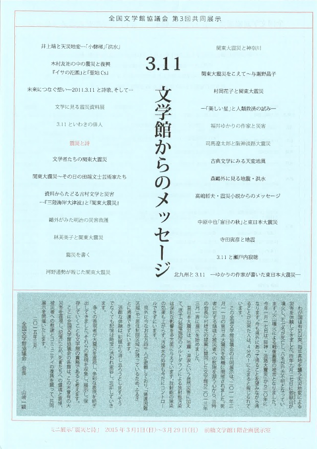 ミニ展示「震災と詩」〈全国文学館協議会共同展示「3・11 文学館からのメッセージ〉